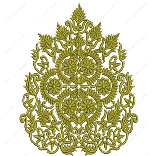 Ornate Green Floral Damask Cushion Embroidery Design with Intricate Scrollwork