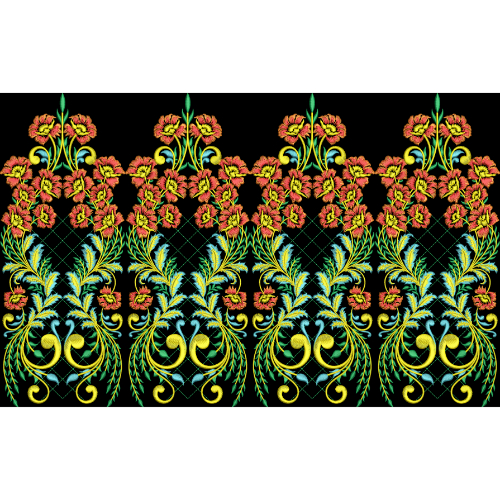 This high-resolution illustration is ideal for digital embroidery references, premium textile printing, festive and ethnic fashion collections, and decorative home décor fabrics. The crisp detailing and professional execution ensure excellent print clarity, preserving the vibrancy of the colors and the intricacy of the repeating floral embroidery for commercial and creative textile design use.