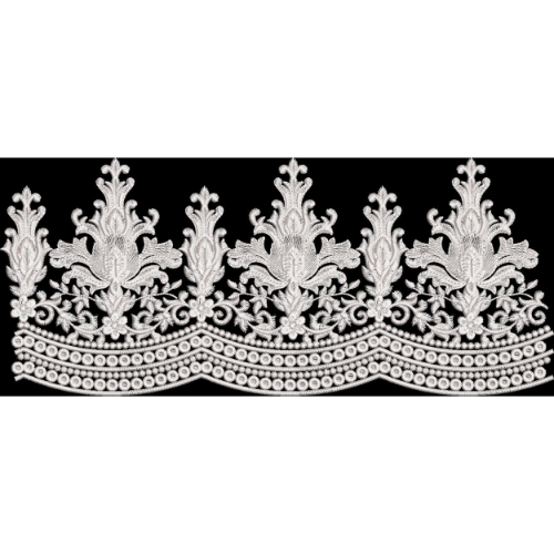 Ornate White Floral Embroidery Border Textile Print Design
