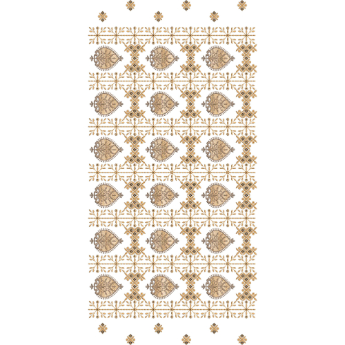 The repetition of paisley butas within the geometric framework results in a cohesive and visually engaging embroidery layout. The combination of flowing ornamental shapes and precise geometric placement creates a refined decorative contrast. This all-over jaal embroidery design reflects a timeless traditional style with intricate detailing and a well-organized repeating structure, resulting in an elegant and sophisticated embroidered composition.