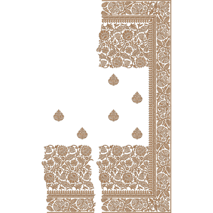 The border is a prominent feature, crafted with multiple layers of intricate floral and ornamental patterns. The vertical border runs continuously with detailed vine and floral elements, while the inner edge is enhanced with fine linear accents that define the structure. The corner alignment is seamless, ensuring a cohesive and polished finish.