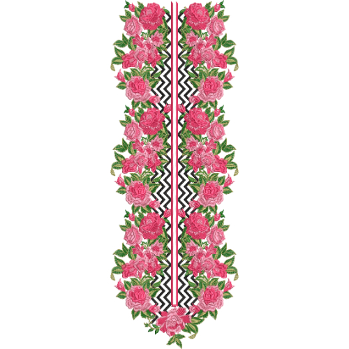 This high-resolution design is ideal for digital textile printing, embroidery reference layouts, and surface pattern applications. It performs beautifully on fabrics such as lawn, cotton, silk, chiffon, georgette, and blended textiles. With its timeless rose motif and structured vertical alignment, this design is well-suited for both traditional and contemporary fashion collections.