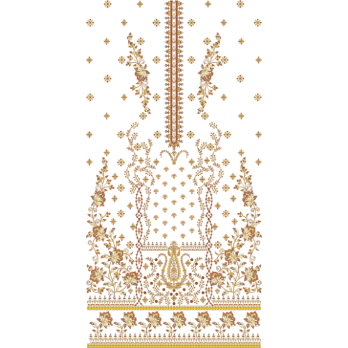 Perfect for front panels of formal dresses, kurtis, and festive attire, this embroidery design reflects timeless traditional artistry combined with a modern luxurious finish. Ideal for premium machine embroidery and high-end fashion collections, it adds elegance, charm, and a regal touch to any garment.