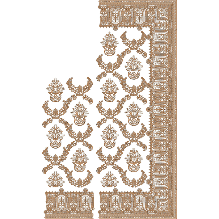 The overall design balances dense ornamental detailing with structured repetition, creating a sophisticated and opulent appearance. The single-tone color enhances the intricacy and highlights the craftsmanship of each element.