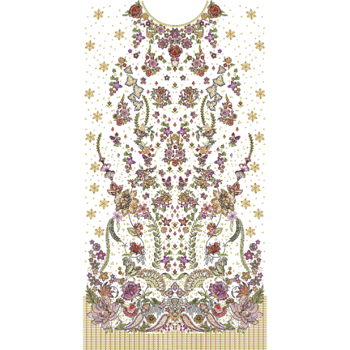 Royal Multicolor Floral Front Panel Embroidery Design with Ornamental Detailing and Border