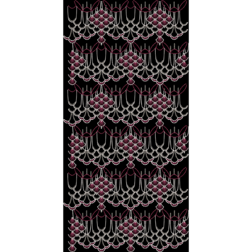 Royalty free lace-inspired embroidery design featuring layered scalloped chains, pearl-like bead motifs, and elegant net-style patterns in soft white and maroon thread work on a black background.