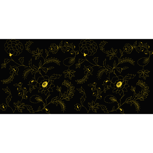 Royalty Free Elegant Floral Outline Embroidery Design with Golden Thread Work on Black Background