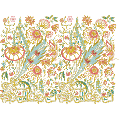 Royalty free floral allover embroidery design featuring decorative vine patterns and multicolor thread work. Ideal for fabric printing, ethnic wear, and textile projects.