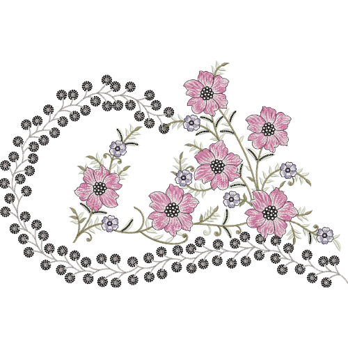 Royalty Free Floral Corner Embroidery Design with Pink Flower Thread Work