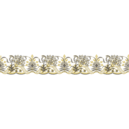Royalty Free Floral Lace Border Embroidery Design with Gold Thread Work
