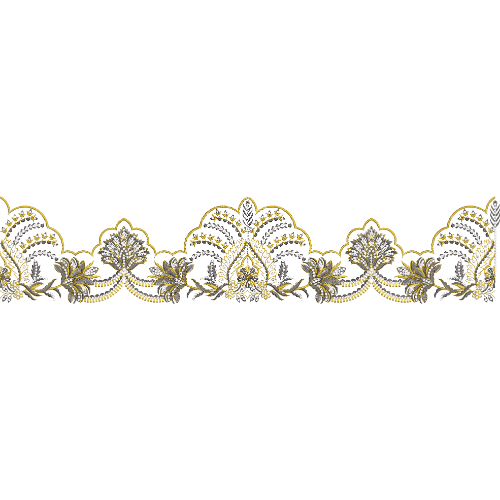 Royalty Free Floral Lace Border Embroidery Design with Gold Thread Work