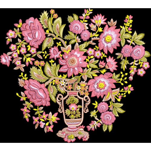 Royalty Free Floral Vase Embroidery Design with Elegant Multicolor Thread Work