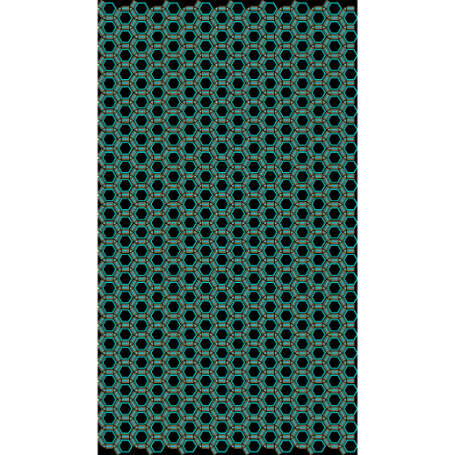Royalty free geometric embroidery pattern featuring an all-over hexagon grid with teal and black thread work. Ideal for modern fashion and textile designs.