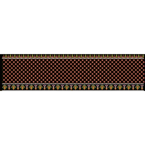 Royalty free geometric floral border embroidery design featuring repeating star-style motifs with multicolor thread work and decorative floral trims on a black background, perfect for ethnic and fashion textile applications.