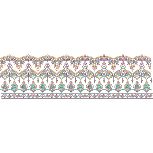 Royalty free ornamental border embroidery design featuring traditional motifs and multicolor thread work. Ideal for garment borders, ethnic wear, and textile projects.