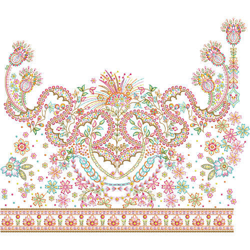 Royalty free ornamental floral border embroidery design featuring vibrant multicolor thread work and intricate detailing. Ideal for ethnic wear, festive garments, and textile projects.