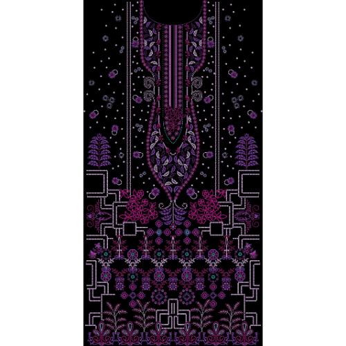 Royalty Free Ornamental Neckline Panel Embroidery Design with Elegant Purple Thread Work