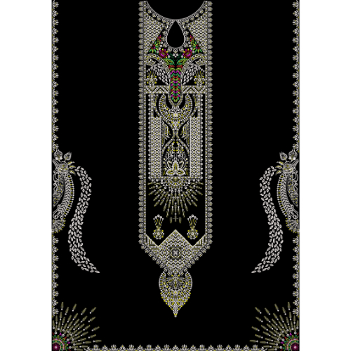 Royalty Free Ornamental Neckline Panel Embroidery Design with Luxury Thread Work