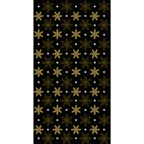 Royalty free repeating floral motif embroidery design featuring golden thread work with evenly spaced star-style flowers and dot accents on a black background, perfect for all-over fabric and minimalist ethnic fashion applications.