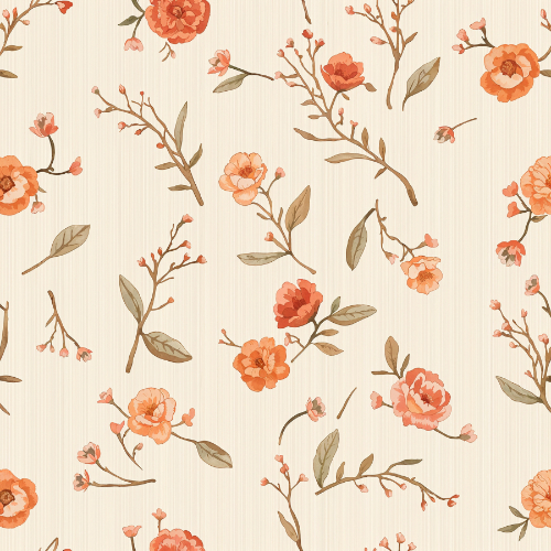 With its warm botanical tones and graceful floral branches, this pattern captures the timeless charm of vintage botanical illustrations and blooming garden flowers.
