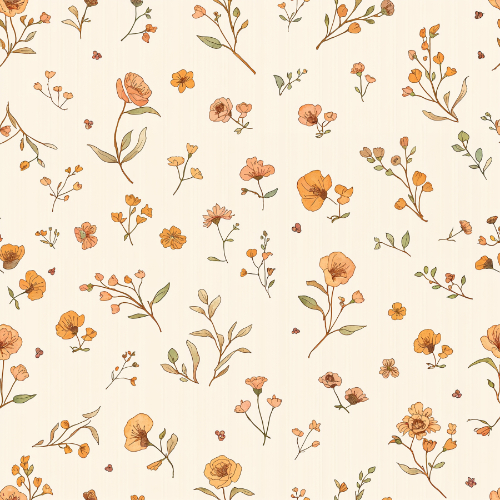 This botanical design works beautifully for fabrics, wallpaper, home décor textiles, stationery, gift wrap, packaging, and digital paper collections. With its warm botanical tones and delicate meadow-inspired arrangement, the pattern captures the timeless beauty of wildflowers in bloom.