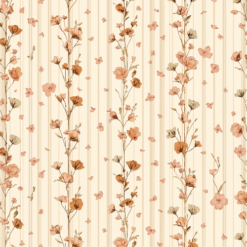 rust floral stripe pattern, botanical vertical stripe design, vintage wildflower seamless pattern, watercolor floral stripe textile print, cottage botanical fabric pattern, peach wildflower repeat design, botanical stripe wallpaper pattern, rustic floral surface pattern, delicate flower stripe design, botanical fabric repeat pattern
