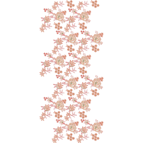 This all-over jaal embroidery design reflects a refined ornamental style that blends delicate floral artistry with fluid vine movement. The cohesive yet lightweight repetition makes it ideal for elegant garment applications requiring sophisticated, full-surface embroidered detailing with a graceful aesthetic.