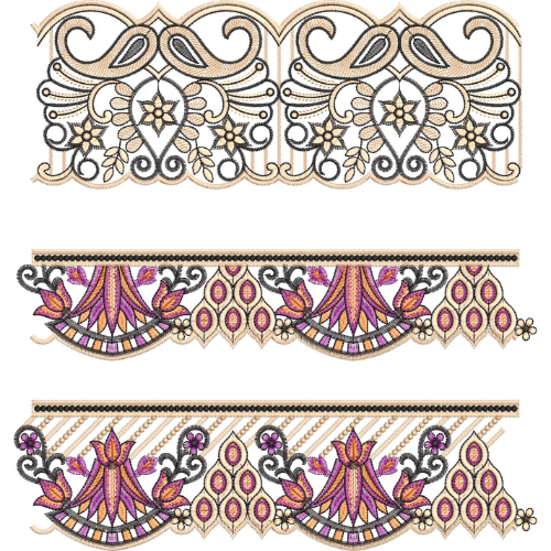 Get the Easy Simple Lace Embroidery Design for an Embroidery Machine. You can apply lace machine-embroidered designs to many types of clothing, including sarees, dupattas, kurtis, t-shirts, abayas, and caftans. We frequently offer new, reasonably priced lace embroidery designs on our website. Dresses with embroidery patterns are quite attractive. For greater quality machine embroidered lace designs and embroidery lace designs, you can peruse our silver embroidery design website.