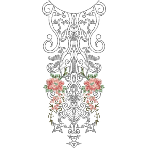 Are you still searching for embroidery for a Simple Neck Embroidery Design? The specific machine-embroidered design, featuring lovely figures and shapes in this trendy embroidery neck set, was created especially for you by our talented embroidery designer team from Pakistan. For higher-quality neck machine embroidery patterns, browse our silver embroidery design website.