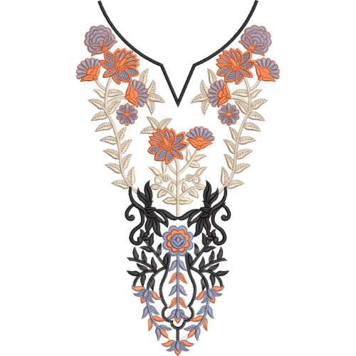 Are you still searching for embroidery for a Simple Neck Embroidery Design? The specific machine-embroidered design, featuring lovely figures and shapes in this trendy embroidery neck set, was created especially for you by our talented embroidery designer team from Pakistan. For higher-quality neck machine embroidery patterns, browse our silver embroidery design website.