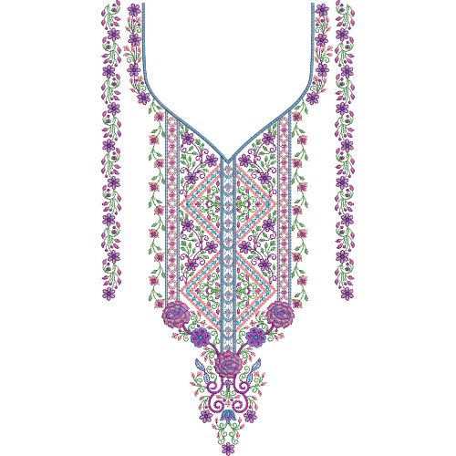 Kurtis, tunics, Pakistani suits, and dresses can all be embroidered with this embroidery neck pattern. This embroidery design can be downloaded right now.