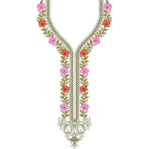 Kurtis, tunics, Pakistani suits, and dresses can all be embroidered with this embroidery neck pattern. This embroidery design can be downloaded right now.