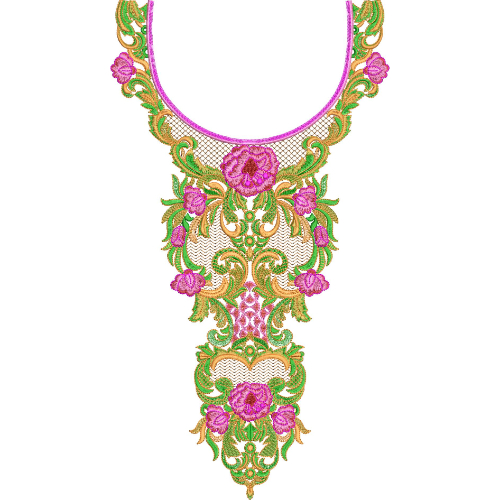 Kurtis, tunics, Pakistani suits, and dresses can all be embroidered with this embroidery neck pattern. This embroidery design can be downloaded right now.