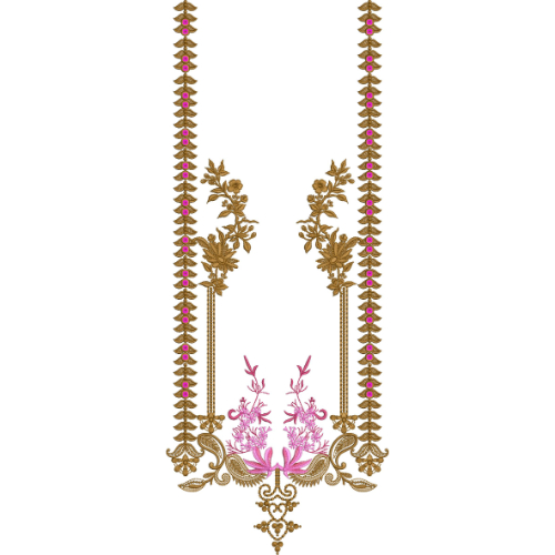 Kurtis, tunics, Pakistani suits, and dresses can all be embroidered with this embroidery neck pattern. This embroidery design can be downloaded right now.
