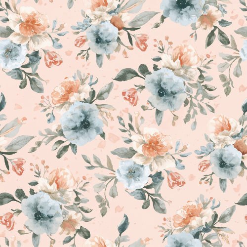 watercolor floral pattern, peach blue flower seamless design, soft botanical blossom repeat, elegant garden floral pattern, romantic watercolor flower print, pastel botanical textile pattern, decorative floral bouquet repeat, vintage garden blossom design, cottage floral surface pattern, watercolor botanical floral repeat