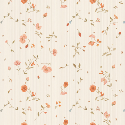 This elegant seamless pattern features a delicate botanical arrangement of wildflowers illustrated in a soft watercolor style. The design highlights small blossoms in warm peach, coral, and soft apricot tones, creating a gentle and harmonious floral palette. Each flower is painted with subtle shading and delicate petal details, giving the pattern a refined hand-painted botanical appearance.