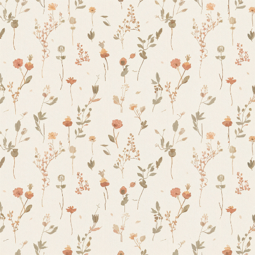 With its soft botanical colors and natural floral arrangement, this design captures the timeless beauty of delicate wildflowers growing freely in a peaceful meadow landscape.