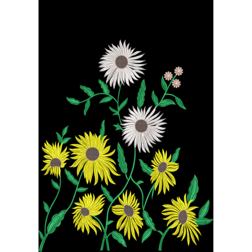 Sunflower Embroidered Floral Motif with White and Yellow Blossoms