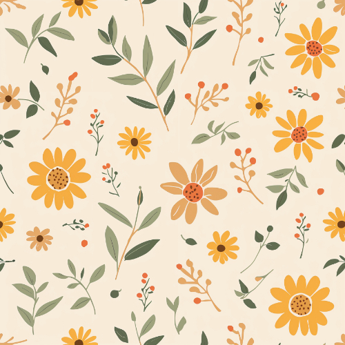 yellow daisy pattern, wildflower floral seamless design, botanical daisy repeat pattern, cheerful flower textile print, sunny floral fabric pattern, simple wildflower botanical design, daisy garden seamless pattern, floral botanical repeat design, yellow flower fabric print, playful wildflower pattern