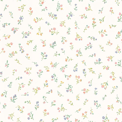 The pattern maintains a light and elegant visual rhythm while allowing each small floral element to contribute to the overall design. The delicate illustration style and soft botanical arrangement make this pattern both timeless and versatile.
