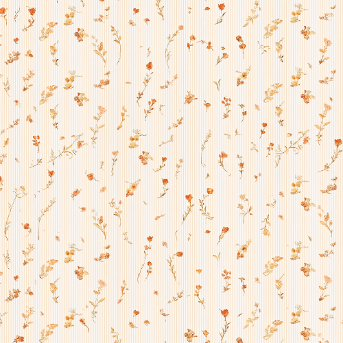 This elegant seamless pattern features a delicate arrangement of tiny wildflowers illustrated in a soft watercolor botanical style. The design showcases miniature blossoms in warm golden peach and soft apricot tones that create a gentle and airy floral palette. Each flower is illustrated with simple petal shapes and subtle shading that give the blossoms a light hand-painted appearance.