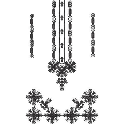 Illustrated entirely in black, the fine stitch-like detailing gives the artwork an authentic embroidered appearance reminiscent of traditional handwork. The light background enhances clarity and sharp contrast, allowing every motif to remain crisp and well-defined.