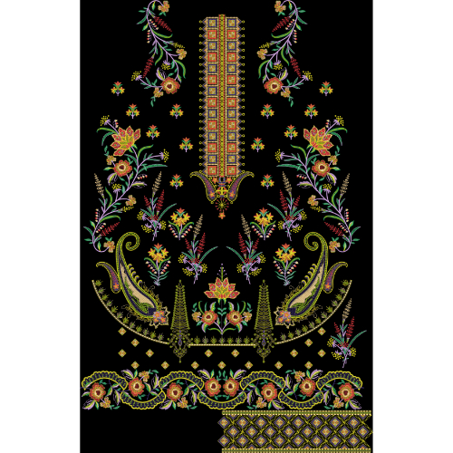 This design is ideal for kurta fronts, kameez panels, long dresses, festive ethnic wear, bridal outfits, and fusion garments. It is also well-suited for digital textile printing, embroidery reference artwork, and premium fashion collections that celebrate traditional craftsmanship with vibrant detailing.