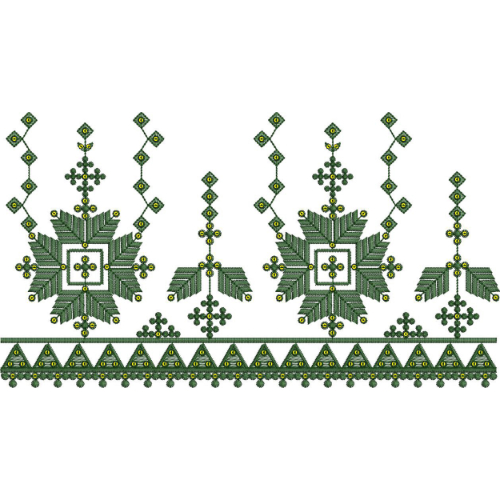 A finely detailed traditional border design featuring green geometric and floral embroidered-style motifs on a light background, ideal for ethnic textile prints and classic fashion fabrics.