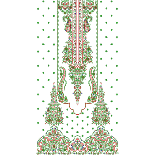 Perfect for bridal wear, festive outfits, formal dresses, and designer kurtis, this embroidery pattern reflects traditional craftsmanship blended with modern elegance. Its rich detailing and structured composition make it ideal for statement front panels and luxury garment creations, adding a regal and high-end touch to any fashion collection.