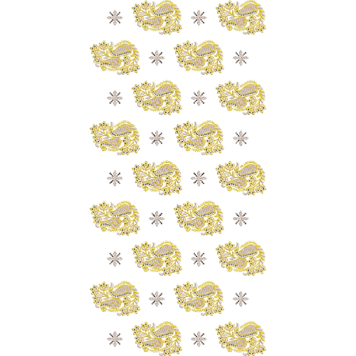 The repetition of the paisley motifs with supporting small floral elements creates a refined and graceful embroidery composition. The spacing between motifs allows each element to stand out while maintaining a consistent jaal formation. This design reflects a timeless ornamental style, combining traditional paisley artistry with a well-organized all-over embroidery layout suitable for elegant and decorative applications.