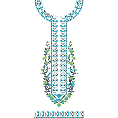 Turquoise Geometric Neckline with Floral Side Vine Embroidery Design