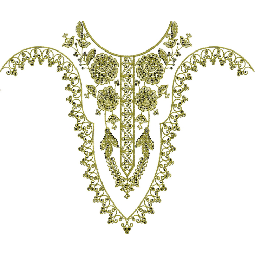 Are you still searching for embroidery for a Unique Neck Embroidery Design? The specific machine-embroidered design, featuring lovely figures and shapes in this trendy embroidery neck set, was created especially for you by our talented embroidery designer team from Pakistan. For higher-quality neck machine embroidery patterns, browse our silver embroidery design website.