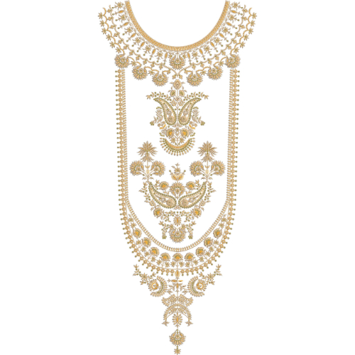 Are you still searching for embroidery for a Unique Neck Embroidery Design? The specific machine-embroidered design, featuring lovely figures and shapes in this trendy embroidery neck set, was created especially for you by our talented embroidery designer team from Pakistan. For higher-quality neck machine embroidery patterns, browse our silver embroidery design website.