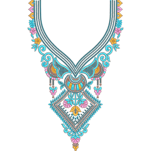 Kurtis, tunics, Pakistani suits, and dresses can all be embroidered with this embroidery neck pattern. This embroidery design can be downloaded right now.